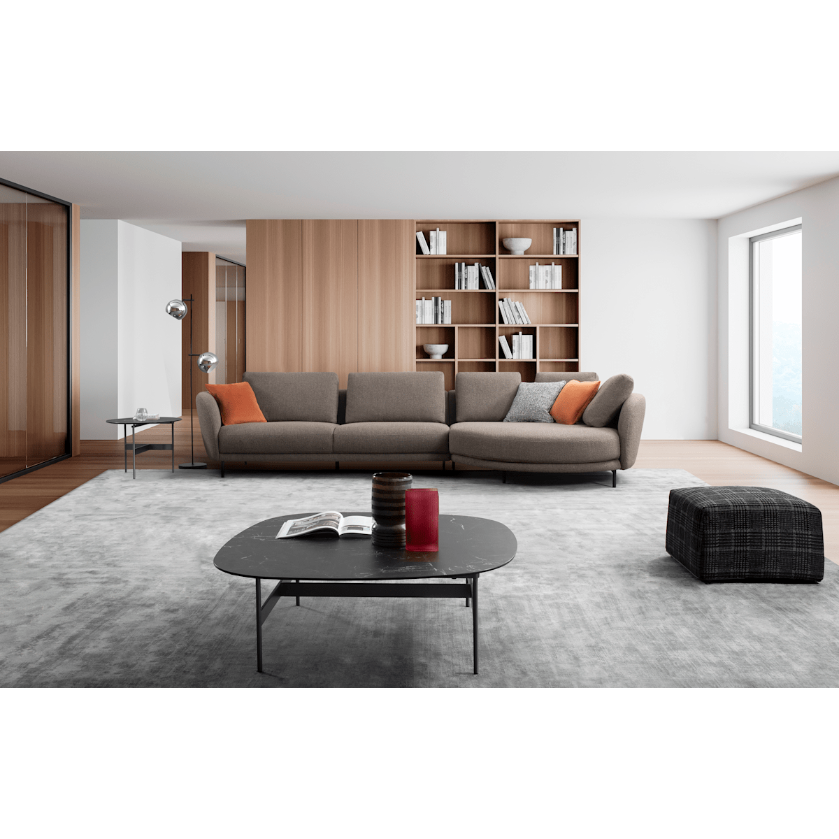 The Carre 2-Piece Sectional from Domicil, an iconic German home furnishings brand now at Star Furniture, is European contemporary styling and modern elegance combined. Soft contours and rounded cuddler chaise offer a combination of masculine modernity with feminine curves. In a lustrous charcoal boucle, it is rich and textural.