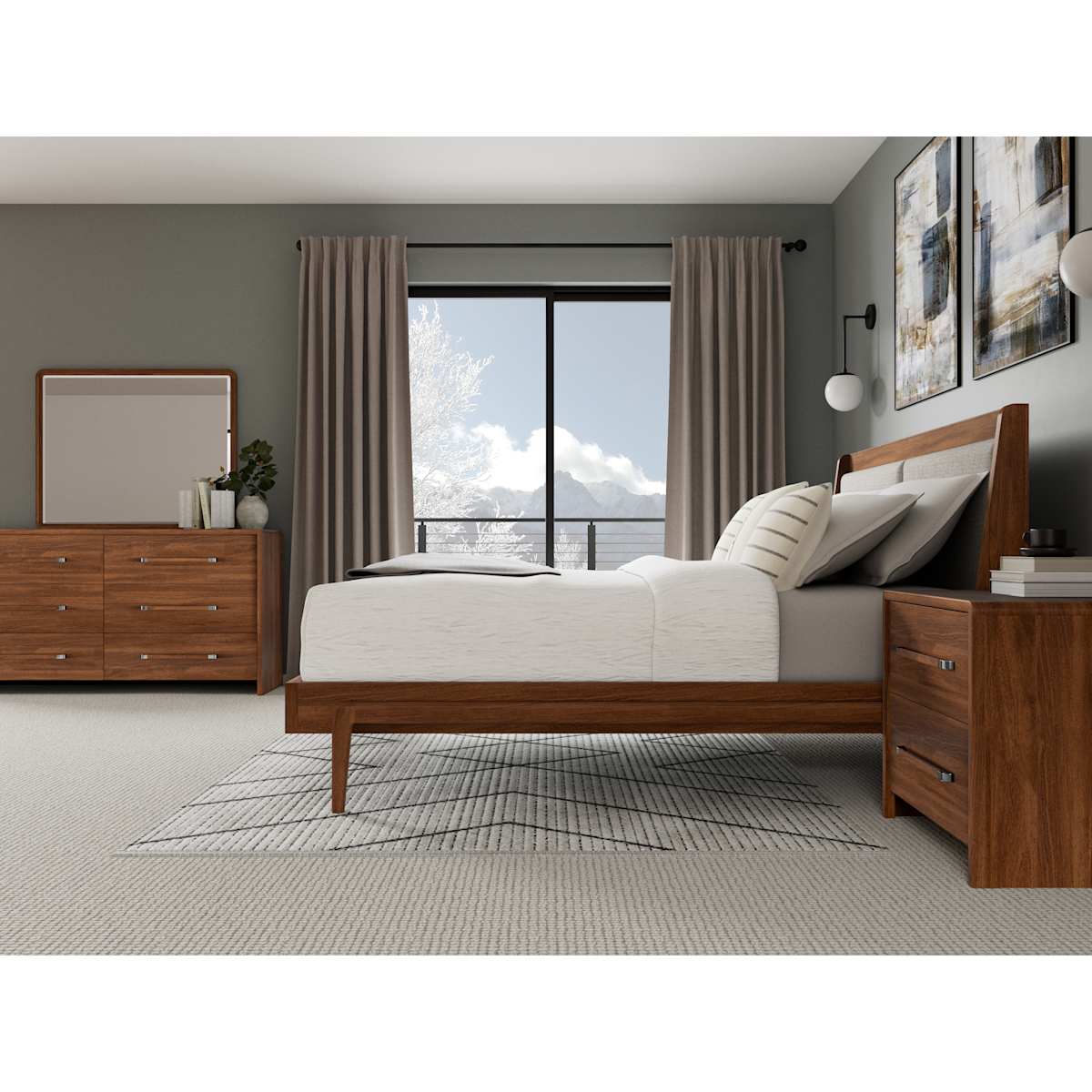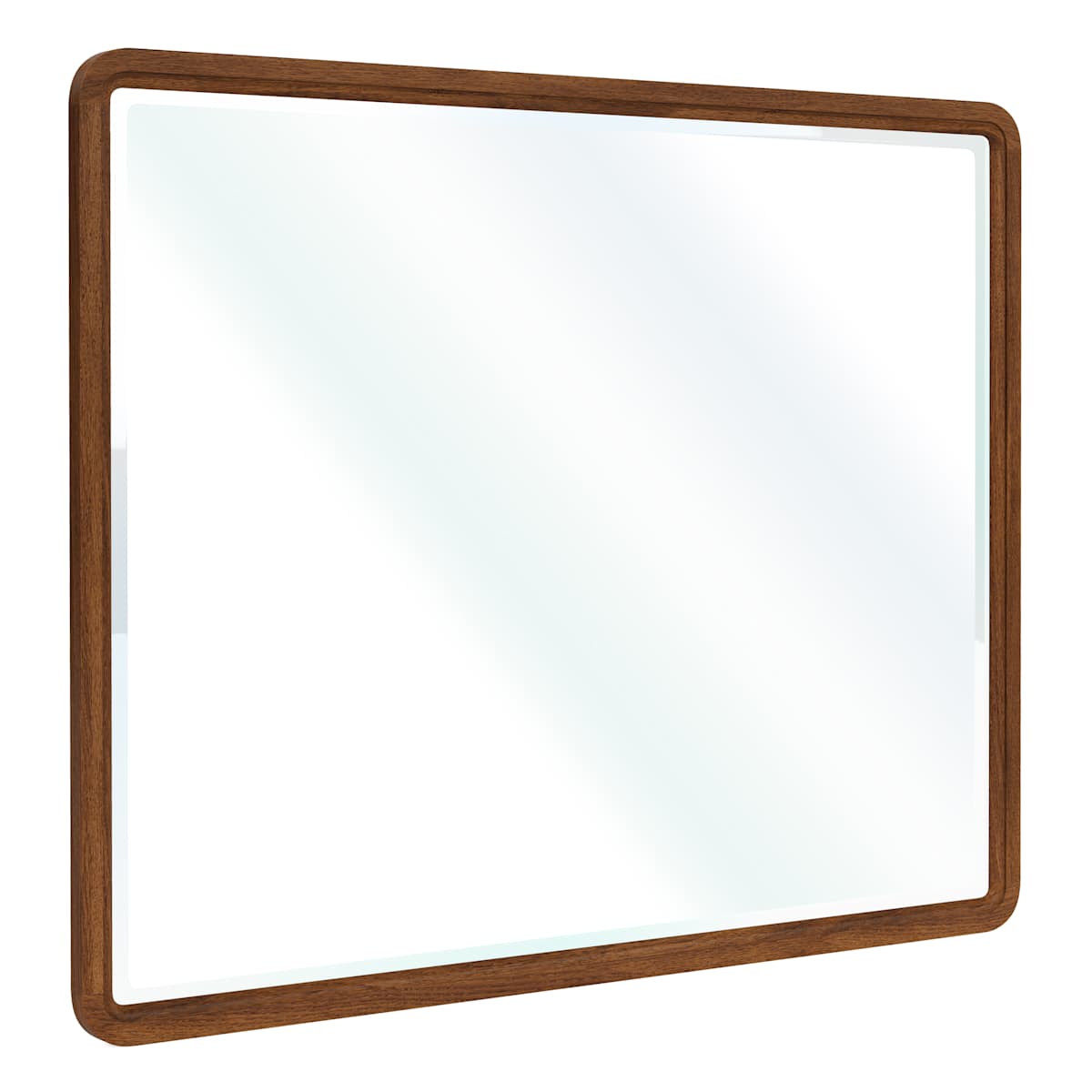 The Emery Mirror features a classic walnut finish frame with a sleek round edge design for a modern touch. Crafted from select hardwood solids, it mounts seamlessly to the dresser, adding both style and functionality to your space.