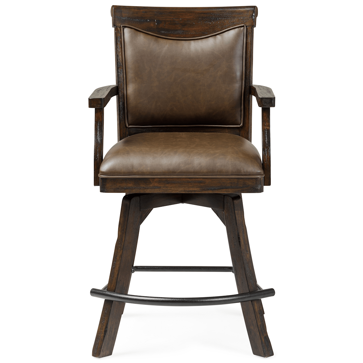 Add comfort to your entertainment space with the inviting Gettysburg Spectator Counter Stool. The stool features an elongated metal foot rest, fully padded seat and back with a smooth swivel mechanism and bonded leather that's durable and easy to clean.
