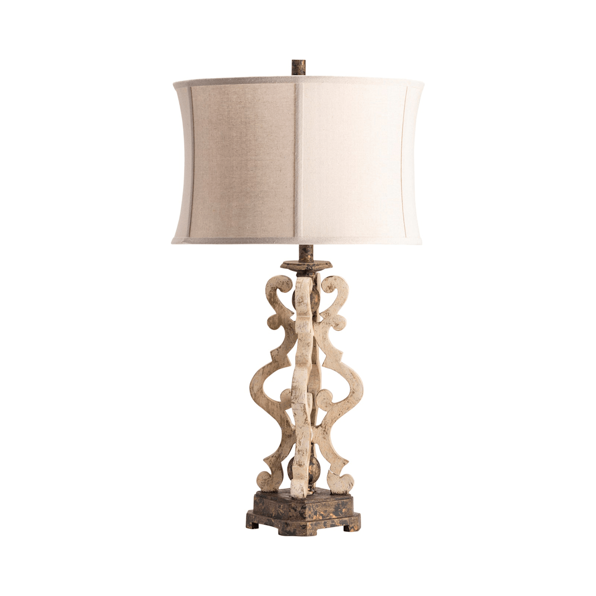 The Leah Table Lamp creates the perfect rustic country vibe for any room in your home. It is Resin Cast from old architectural elements has a weathered and aged finish and a natural linen shade.