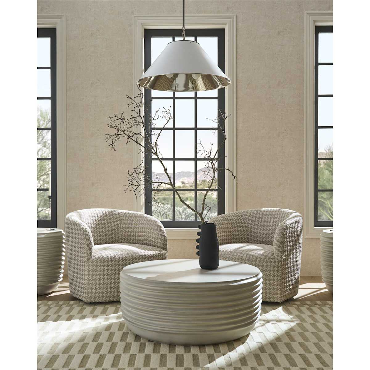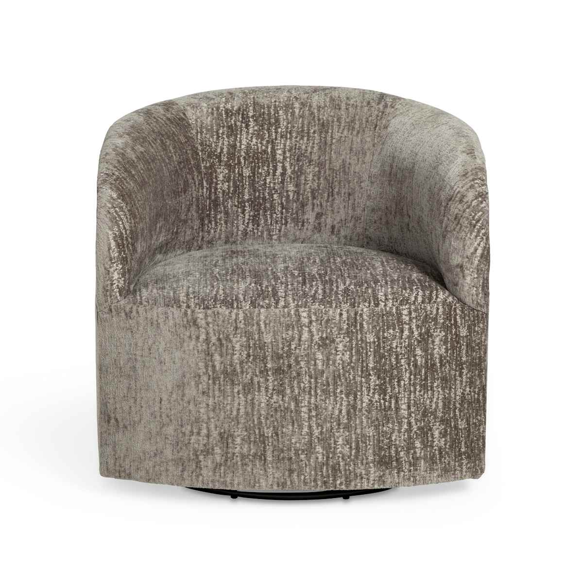 Upgrade your living space with the modern Megan Swivel Chair, designed for both comfort and style. Upholstered in soft, textured fabric, this barrel-style swivel accent chair features a smooth 360-degree rotation-perfect for living rooms, bedrooms, or home offices. Its compact, contemporary design makes it an ideal seating solution for small spaces or open floor plans. This style is available in other fabrics and leathers, as part of our custom order program.
