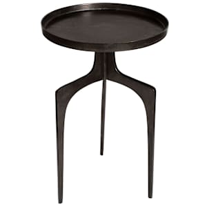 The Melange Marin End Table from Hooker Furniture features Pewter metal base with tumbled white onyx top that includes asymmetrical stone detail with earth-toned colors. Its unique and eclectic style will be a special addition to your home.