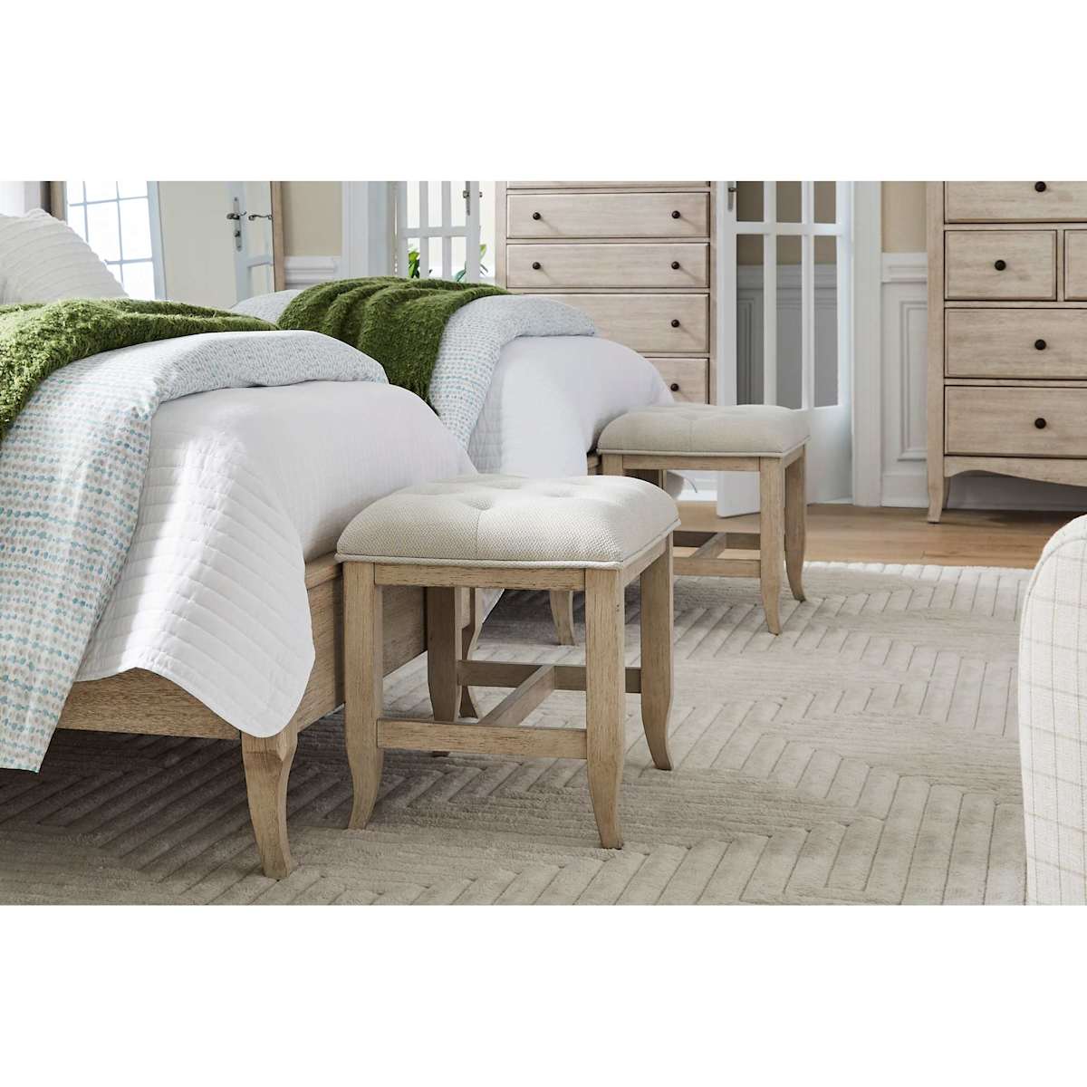 The Provence Single Bench is a timeless and classic addition to any bedroom. Crafted from select hardwoods and acacia veneers in a soft linen finish, it offers both beauty and durability. The seat features warm taupe tufted upholstery, adding a touch of elegance and comfort. Whether placed at the foot of the bed or along a wall, this bench brings refined charm and versatile functionality to your space.