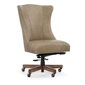 The Santa Cruz Office Chair features a goat leather back and seat with diamond stitching and a bronze finished iron frame and tapered legs.