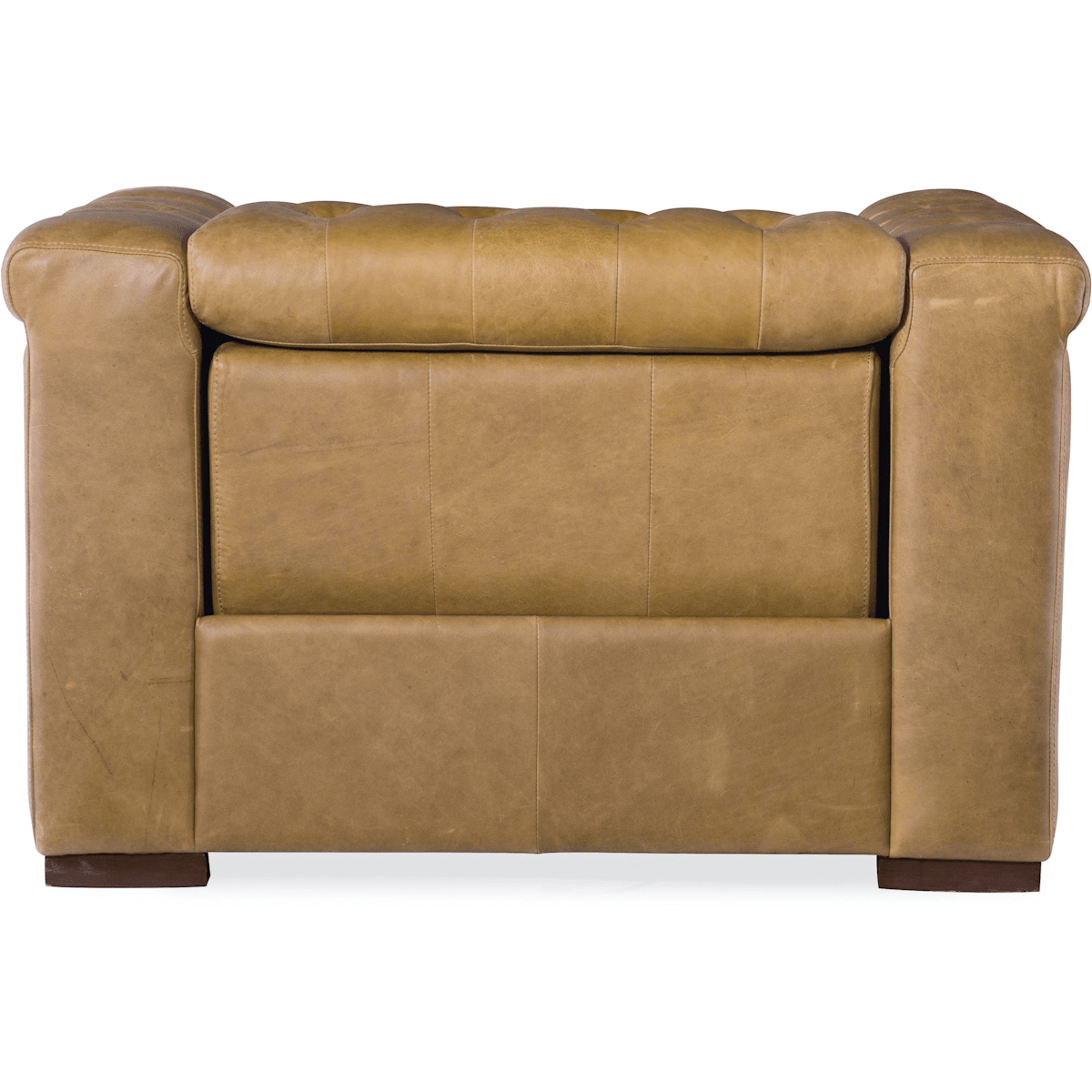 The Savion 2-Power Recliner by Hooker Furniture in coin colorway exudes style and sophistication with its button-tufted detailing and rich caramel toned leather. The tufting is everywhere but the outside arms and back, giving it a clean and modern look with a traditional Chesterfield twist. Nail head trim outlines and emphasizes the impeccable tailoring. In 100% Top Grain Leather, the Savion wall hugging recliner is a quality piece made for lasting comfort and style.