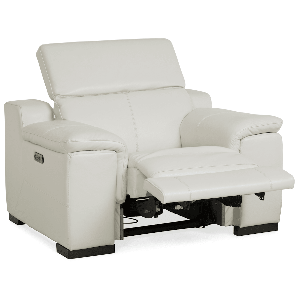 The Sky Power Recliner is upholstered in top grain leather everywhere the body touches. A wide, low profile provides a sleek appearance that's enhanced by a unique lay-over-top...