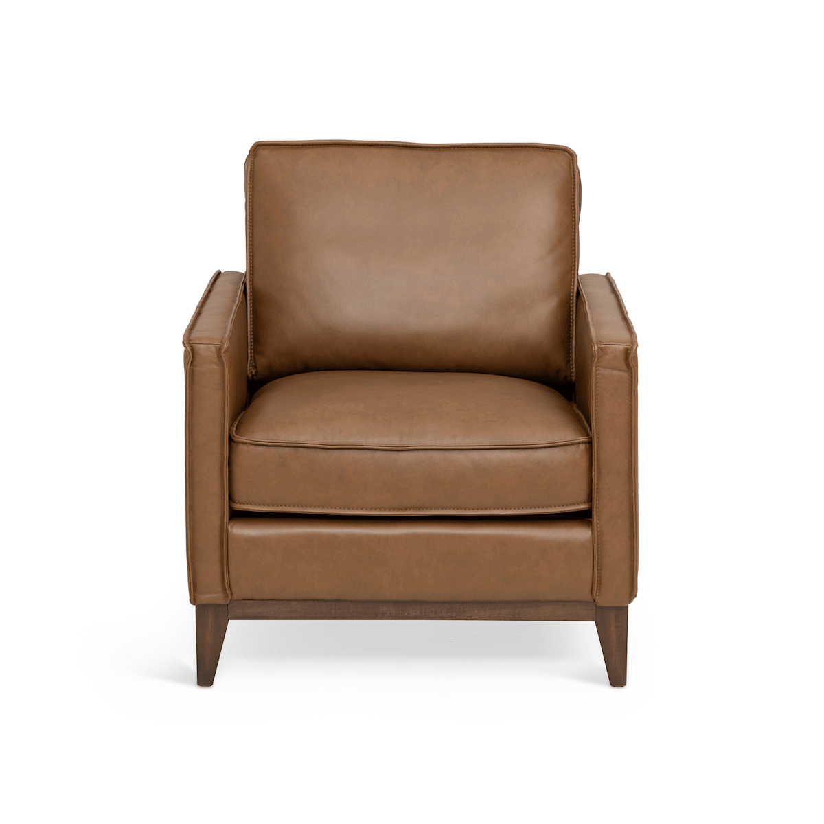 The Wade Chair brings modern sophistication and luxurious comfort to any room, featuring clean lines and a timeless silhouette. Upholstered in rich, top-grain brown leather, this accent chair offers plush seating with a deep cushion and supportive backrest, perfect for relaxing in style. Sleek track arms and tapered wood legs enhance its contemporary design, making it a standout addition to living rooms, offices, or reading nooks. Built with quality craftsmanship and durable materials, the Wade Chair is a chic and lasting investment for those who value both style and substance in their home décor.