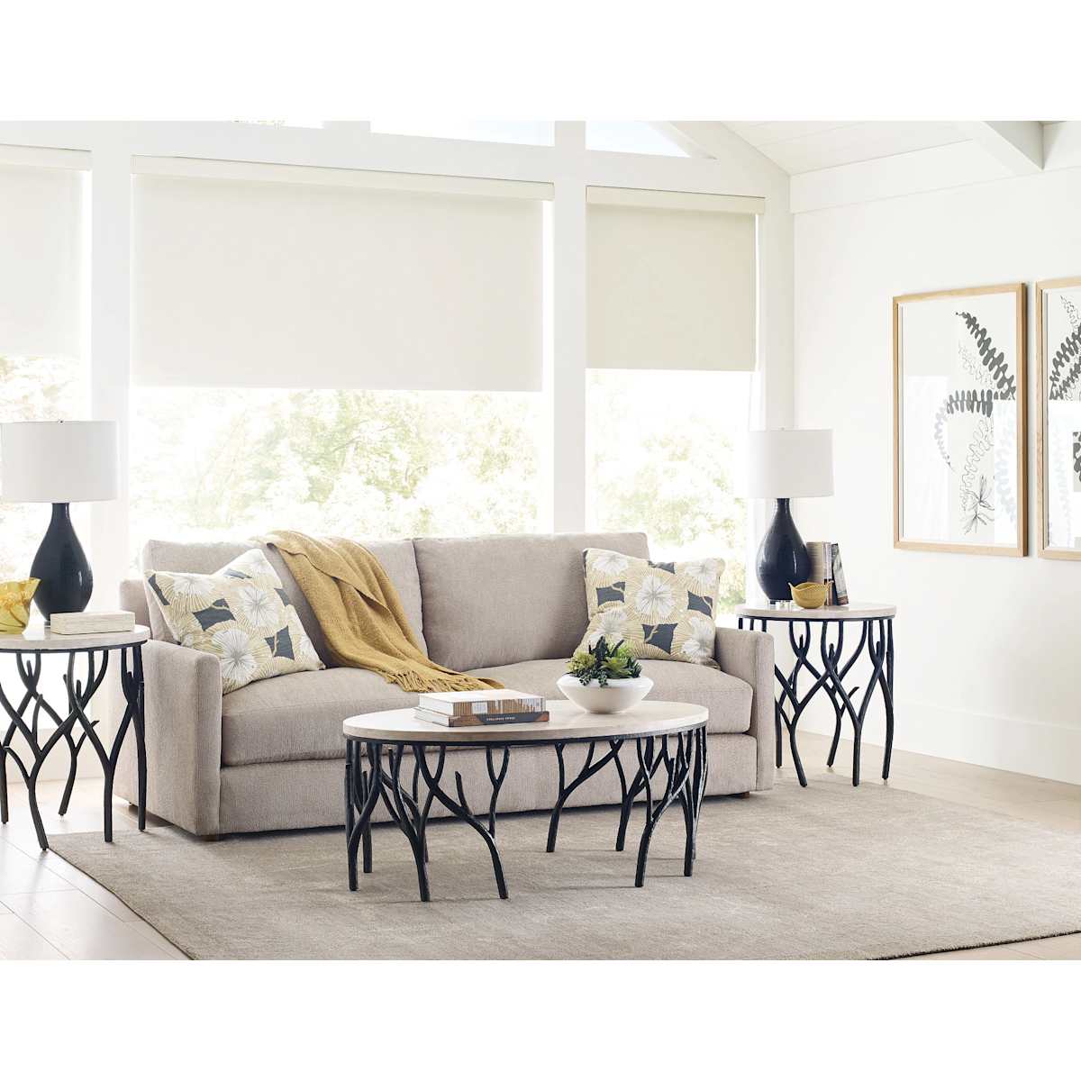 Bring organic elegance into your living space with the Wrenly Occasional Table. Designed to feel both sculptural and inviting, this piece blends nature-inspired artistry with modern sophistication. The oval travertine tabletop features a light, natural finish that brightens the room while offering a warm, versatile surface for everyday living. Supporting it is a striking metal base, crafted to resemble intertwined tree branches. The dark, textured finish creates dramatic contrast and adds depth, making the table as much a statement piece as it is a functional accent. Perfect for contemporary, rustic, or transitional interiors, the Wrenly Occasional Table anchors your seating area with effortless style-ideal for displaying décor, holding drinks, or gathering around for conversation.