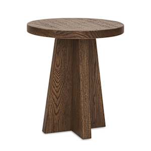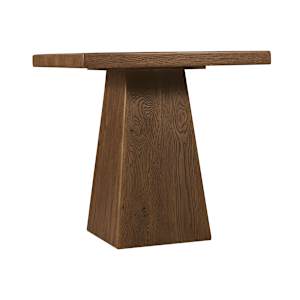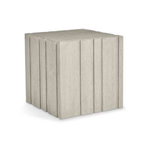 Polished stainless steel frame with wood top in Flint finish and inlaid stainless steel accent.
